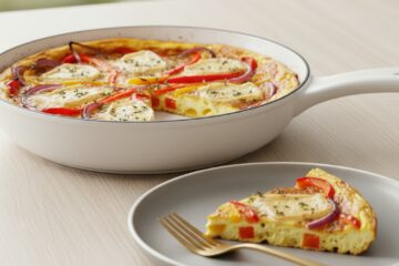 - Faire chauffer l’huile d’olive dans une grande poêle à feu moyen et y faire revenir l’oignon et l’ail.