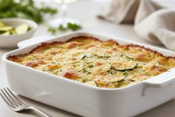 - Enfournez le plat pour 35 à 40 minutes, jusqu’à ce que le dessus soit bien doré et gratiné. Laissez reposer 5 minutes avant de servir.