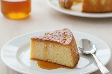 - Une fois le gâteau cuit, sortez-le du four et laissez-le tiédir pendant 5 minutes. Versez le sirop chaud sur le gâteau encore dans le moule, en veillant à bien répartir le liquide. Laissez reposer pendant 1 heure pour que le gâteau absorbe tout le sirop.