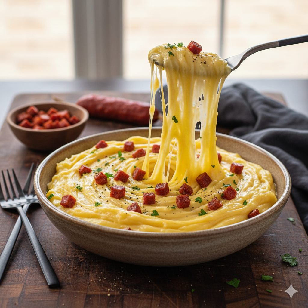 - Goûtez et ajustez l’assaisonnement avec du sel et du poivre si nécessaire. Servez immédiatement, bien chaud, pour profiter de la texture filante et onctueuse.