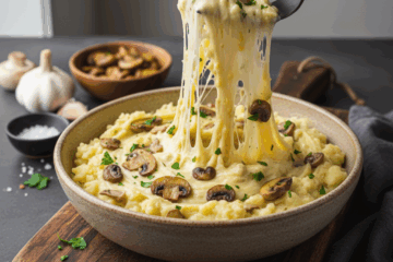 - Coupez la tome fraîche en petits morceaux et incorporez-les progressivement à la purée chaude. Mélangez vigoureusement avec une cuillère en bois ou une spatule, en effectuant des mouvements circulaires pour étirer la purée. Continuez jusqu’à ce que l’aligot devienne filant et homogène. Assaisonnez avec du sel et du poivre selon votre goût.