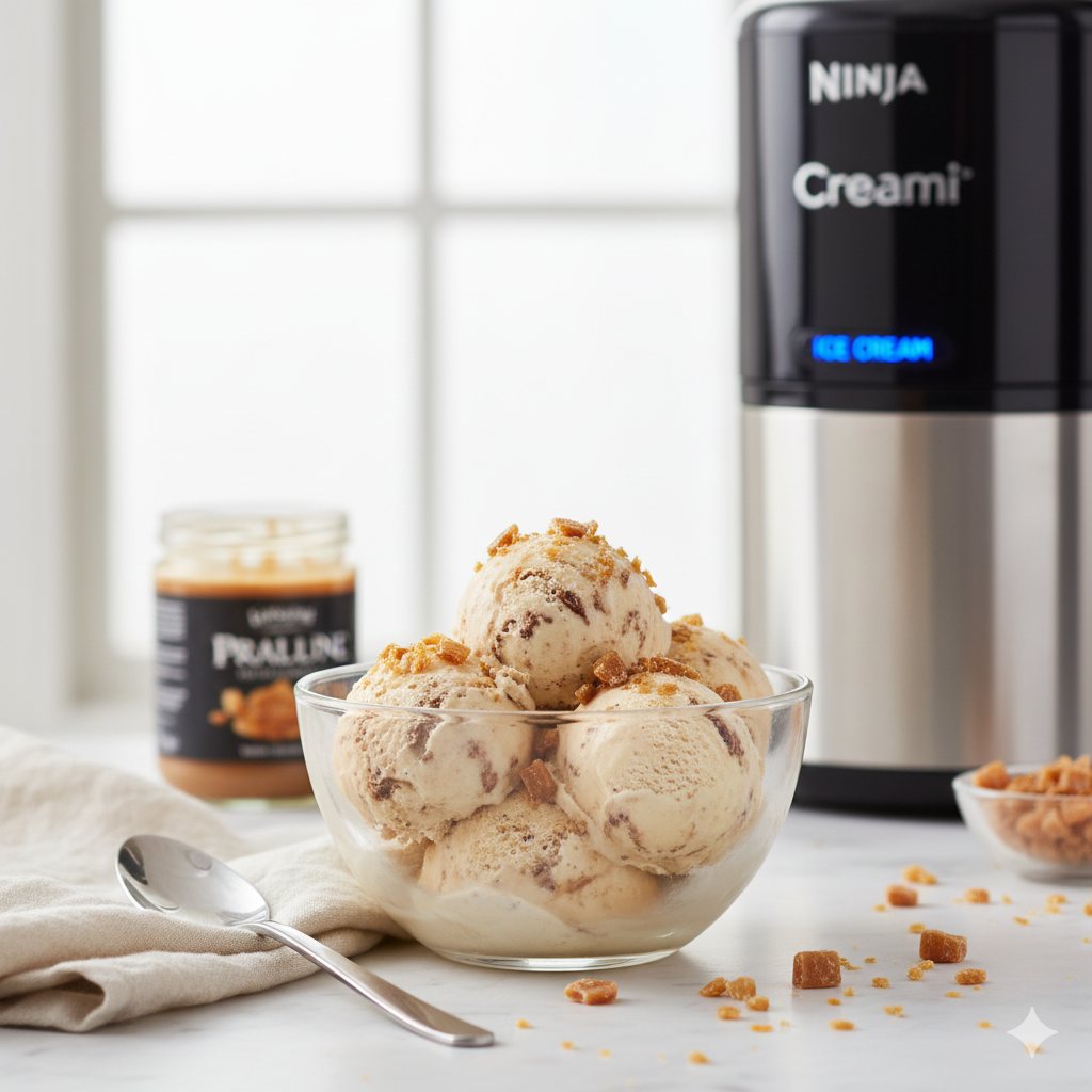 Crème glacée praliné et éclats de caramel au Ninja Creami