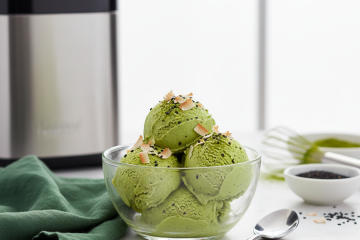 - Une fois congelée, insérez le récipient dans le Ninja Creami et sélectionnez le mode ‘Glace’. Laissez l’appareil travailler jusqu’à obtenir une texture onctueuse.