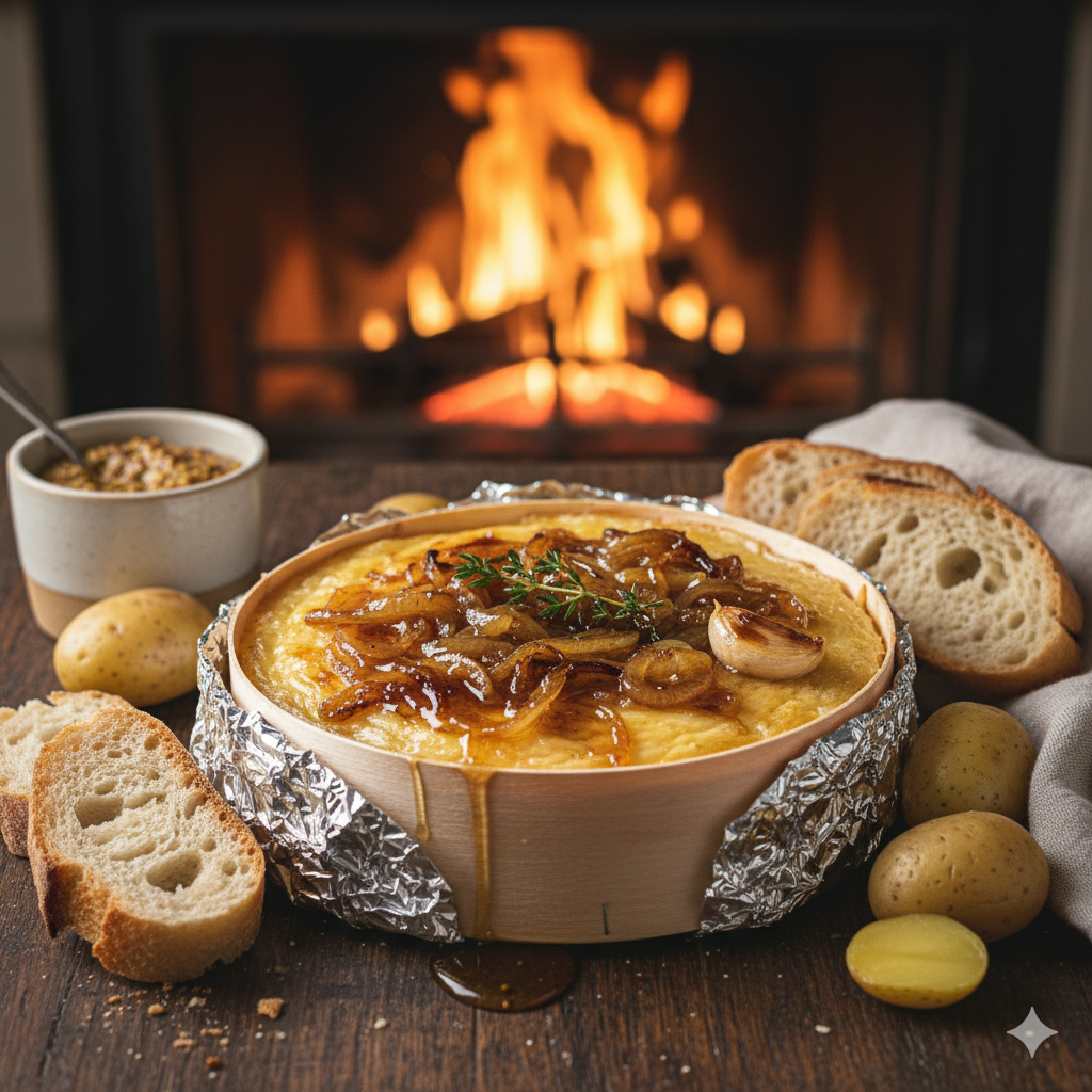 Mont d’or au four avec oignons caramélisés et miel
