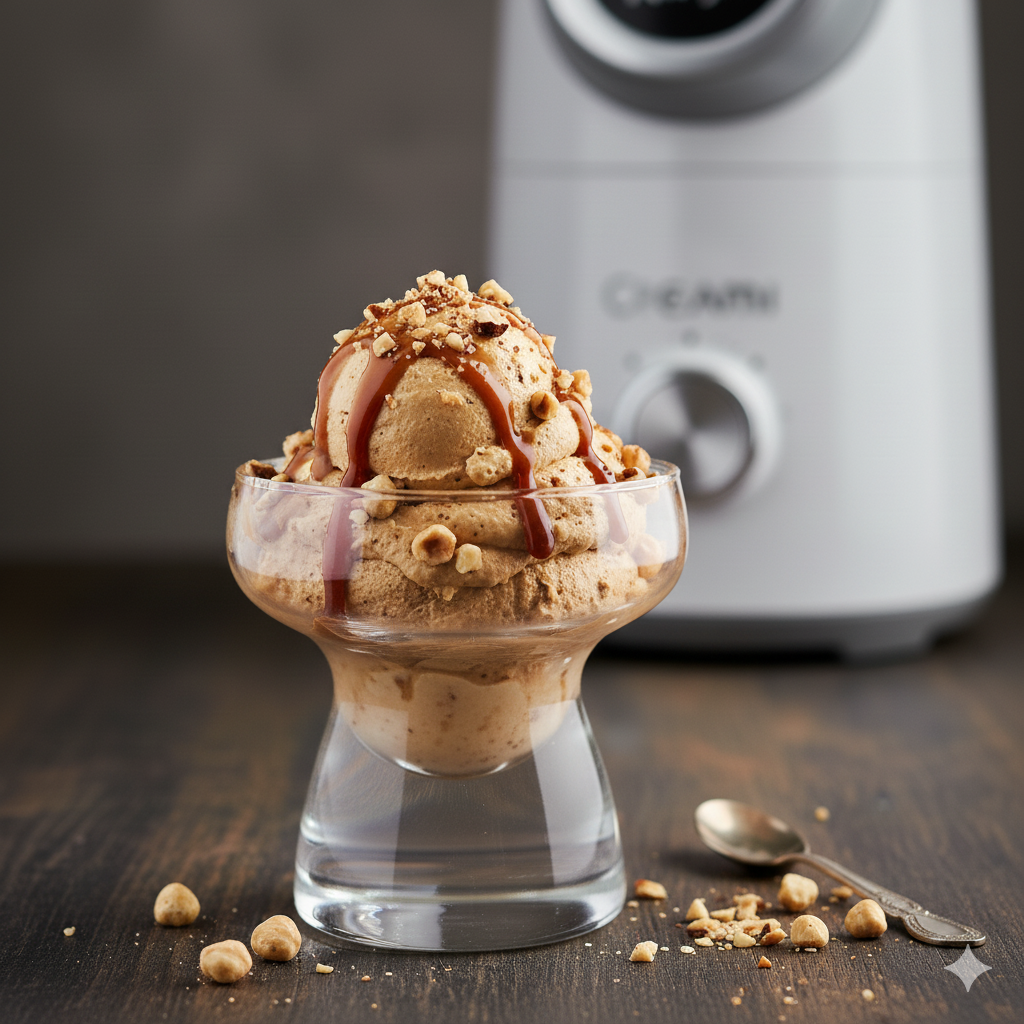 Découvrez une mousse au caramel et noisettes onctueuse et gourmande, réalisée facilement avec le Ninja Creami. Cette recette allie la douceur du caramel à la richesse des noisettes pour un dessert irrésistible. Parfait pour les amateurs de saveurs sucrées et de textures légères.