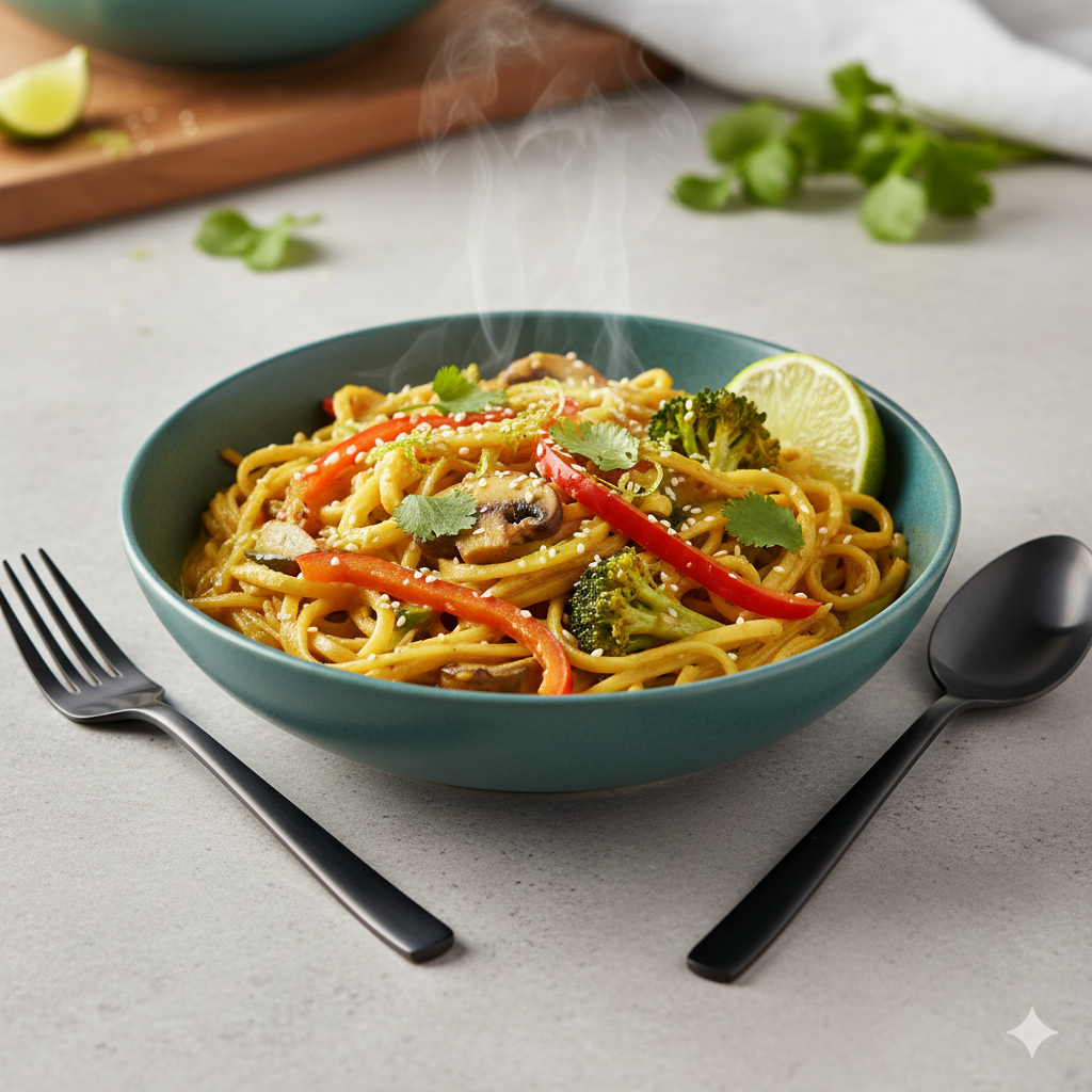Nouilles de riz au curry de légumes facile