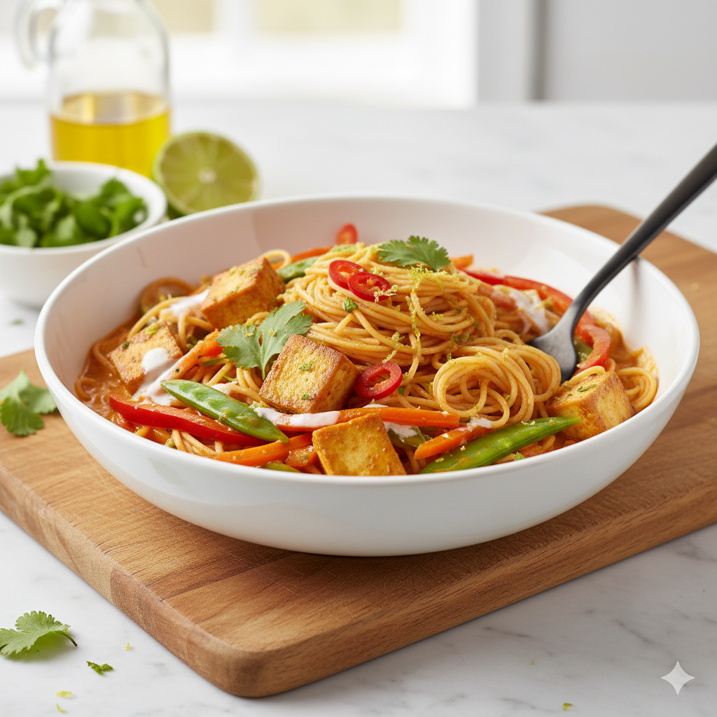 Nouilles de riz au curry rouge et tofu : recette facile et savoureuse