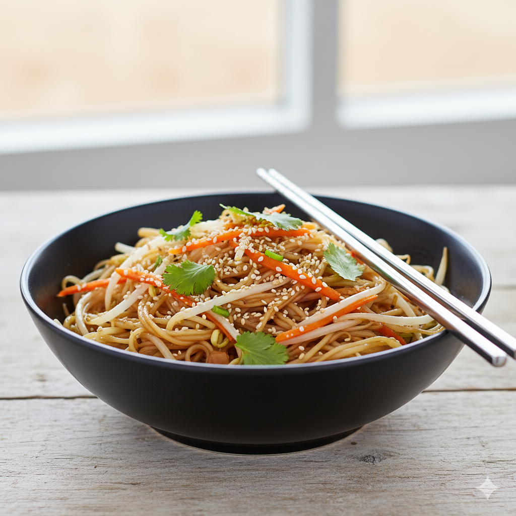 Nouilles de riz sautées aux haricots mungo et carottes