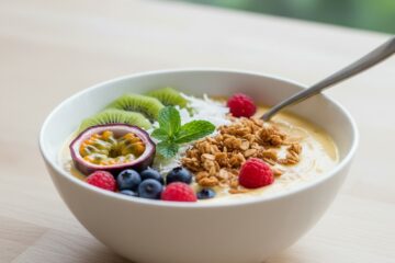 - Épluchez la mangue et coupez-la en fines lamelles ou en petits cubes selon votre préférence. Placez-les dans un bol.