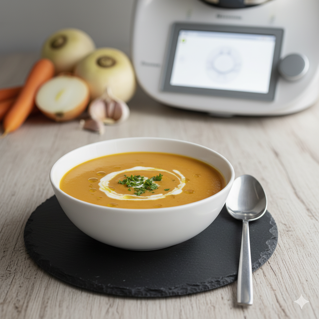 Un potage réconfortant et savoureux, parfait pour les soirées fraîches. Cette recette simple et rapide au Thermomix met en valeur la douceur des carottes et la légère amertume des navets, pour un équilibre parfait. Idéal pour une alimentation saine et gourmande.