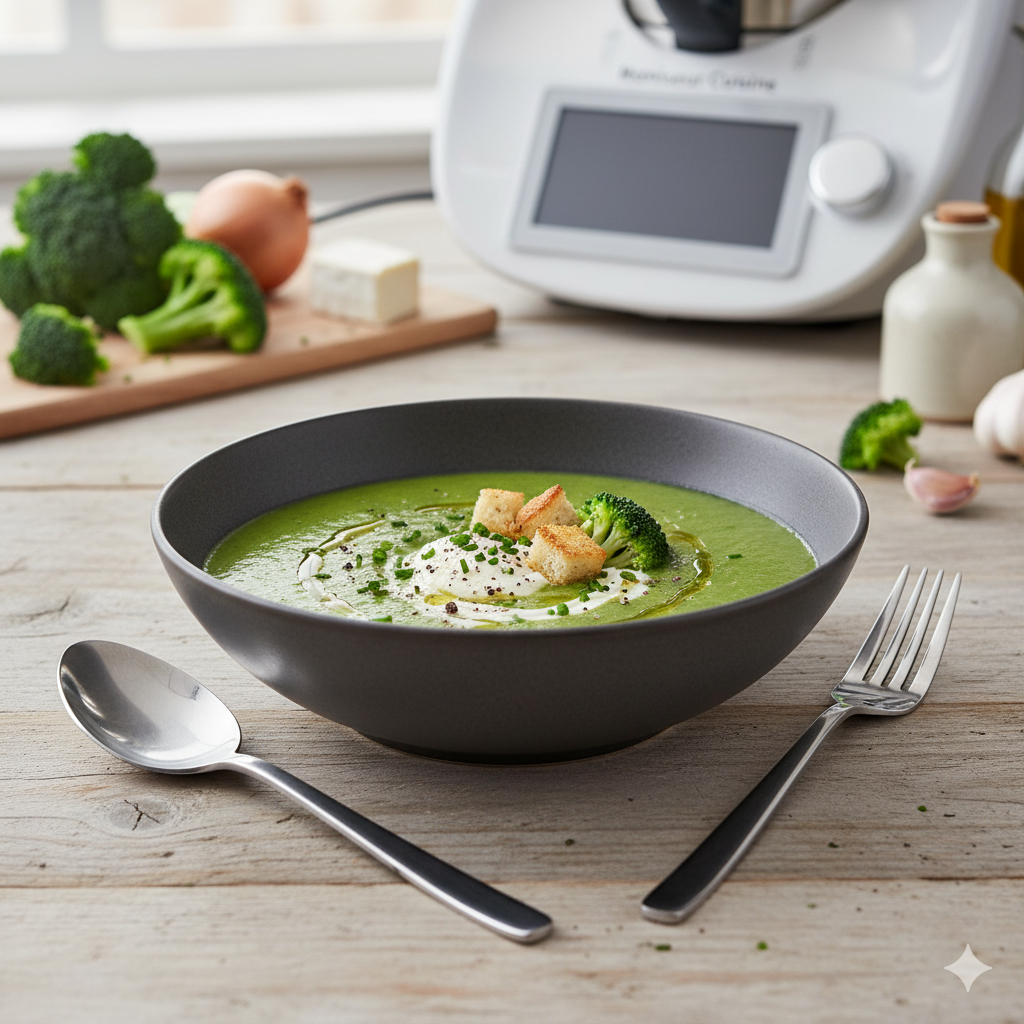 Une soupe onctueuse et savoureuse à base de brocoli et de fromage de chèvre, préparée facilement avec le robot Monsieur Cuisine. Cette recette allie simplicité, gourmandise et bienfaits nutritionnels grâce aux légumes riches en vitamines et au fromage de chèvre crémeux.