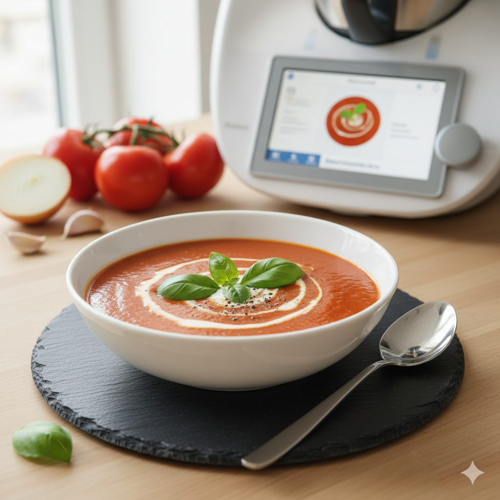 Découvrez une soupe de tomates et basilic au Thermomix, une recette simple, rapide et savoureuse. Parfaite pour une entrée légère ou un dîner réconfortant, cette soupe met en valeur la fraîcheur des tomates et l’arôme du basilic. Une recette saine et gourmande qui ravira toute la famille.