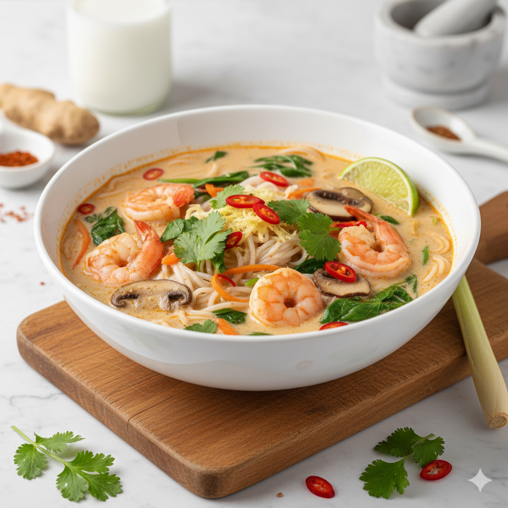 Soupe thaïlandaise aux nouilles de riz et lait de coco