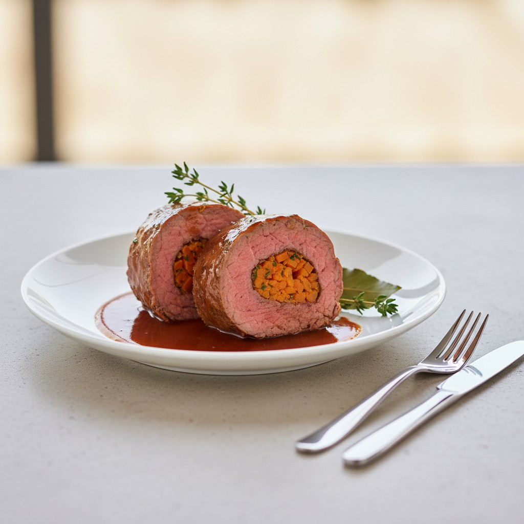 Ballotine de bœuf farcie aux carottes et herbes aromatiques