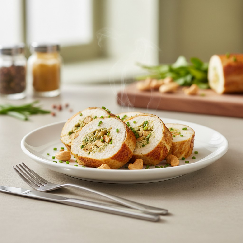 - Coupez les ballotines en tranches épaisses et servez-les chaudes, décorées de ciboulette ou de persil frais. Accompagnez-les de riz basmati ou de légumes sautés pour un repas complet.