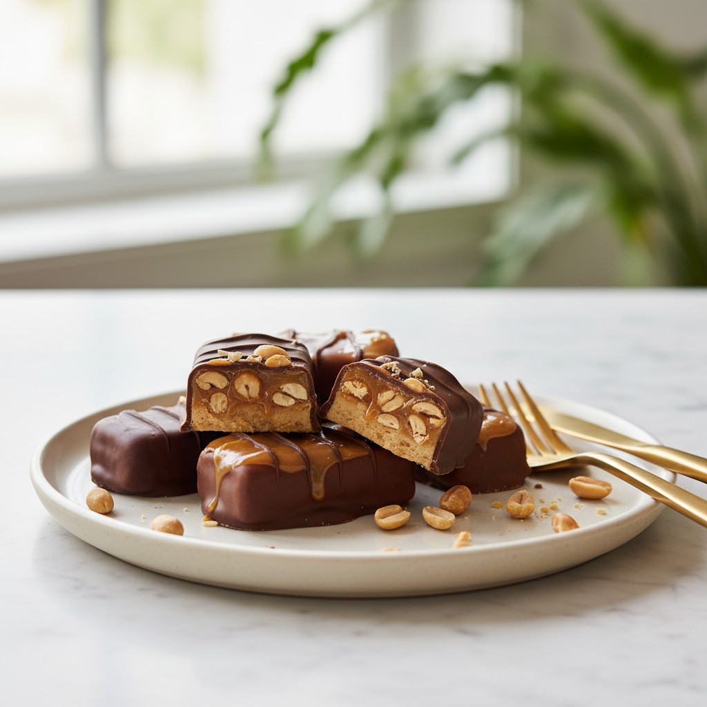 Ces barres chocolatées maison s’inspirent du célèbre Snickers : une superposition gourmande de nougat moelleux, de caramel fondant et de cacahuètes croquantes, le tout enrobé de chocolat noir ou au lait. Cette version permet de contrôler la qualité des ingrédients, d’ajuster la teneur en sucre et d’éviter les additifs industriels. Idéale pour les amateurs de pâtisserie qui veulent comprendre les secrets de l’équilibre entre textures et saveurs. Le Snickers, créé dans les années 1930 aux États-Unis, est devenu un classique de la confiserie. Réaliser cette recette chez soi, c’est aussi s’initier à la technique du caramel et à l’art de l’enrobage, tout en se régalant d’une gourmandise authentique.