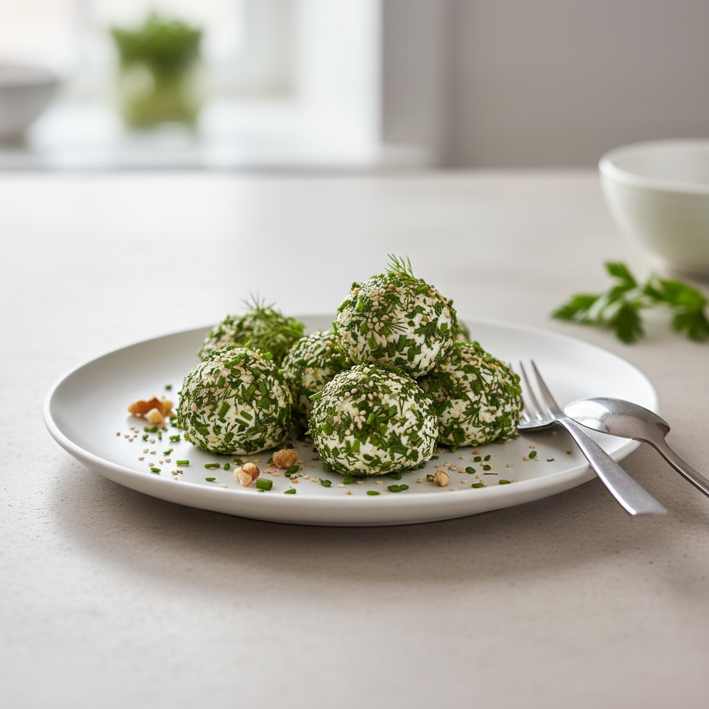 - Roulez chaque boule dans le mélange d’herbes fraîches pour bien les enrober. Vous pouvez également varier les enrobages en utilisant des graines de sésame ou des noix concassées.