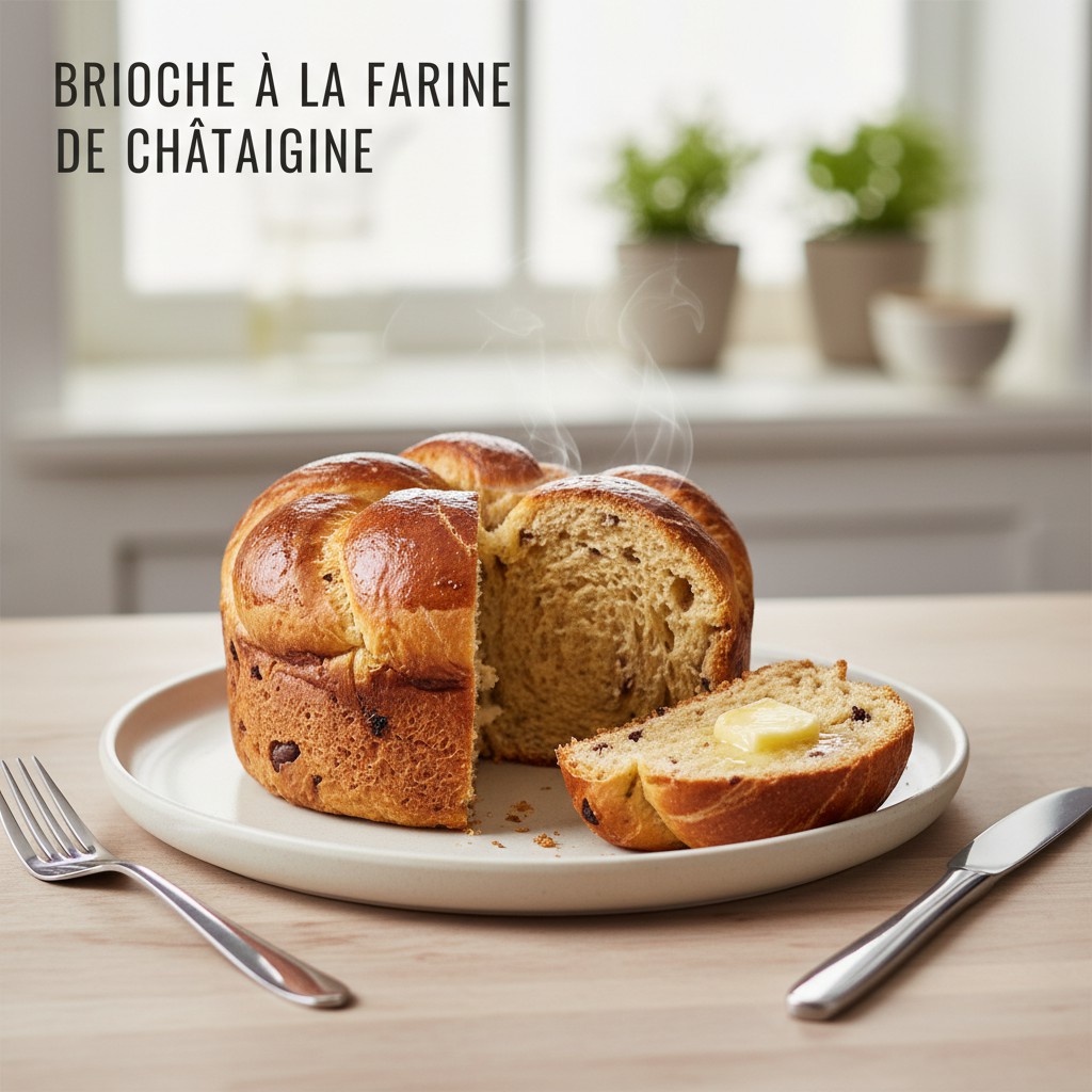 La brioche à la farine de châtaigne marie la douceur rustique de la châtaigne à la tendresse d’une pâte levée. Cette recette, inspirée des traditions rurales du sud de la France et de Corse, met en valeur un ingrédient ancien, naturellement sans gluten (mais ici associé à de la farine de blé pour la structure). La farine de châtaigne apporte une saveur boisée, légèrement sucrée, et une couleur chaleureuse. Cette brioche est idéale pour le petit-déjeuner ou le goûter, et permet de varier des brioches classiques tout en profitant d’un index glycémique plus modéré et d’une richesse en fibres. Recette accessible, mais nécessitant rigueur sur le pétrissage et la levée pour garantir une mie aérée.