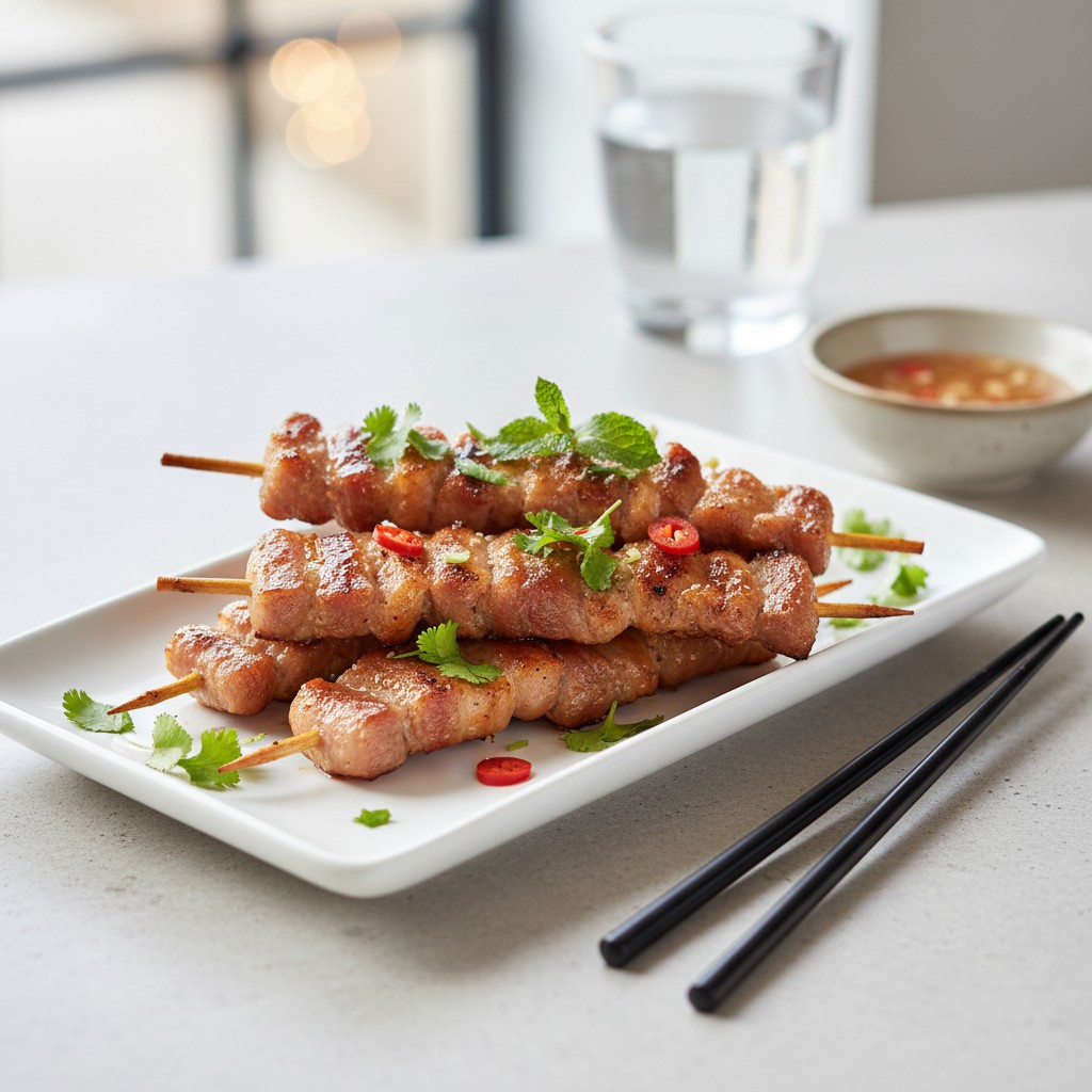 Découvrez une recette vietnamienne authentique : des brochettes de porc marinées au nuoc-mâm, grillées à la perfection. Parfaites pour un barbecue ou une cuisson au four, elles offrent un équilibre subtil entre salé, sucré et umami. Une option savoureuse et facile à préparer pour vos repas en famille ou entre amis.