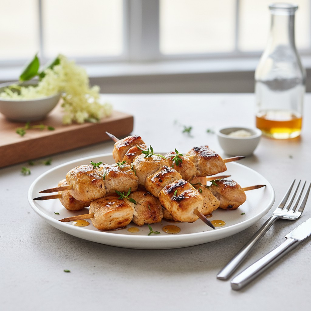 Découvrez une recette originale de brochettes de poulet marinées au sirop de sureau, alliant douceur et saveurs subtiles. Parfaites pour un barbecue ou une cuisson au four, ces brochettes sont à la fois légères et pleines de caractère. Une touche florale qui sublime le poulet tout en restant simple à préparer.