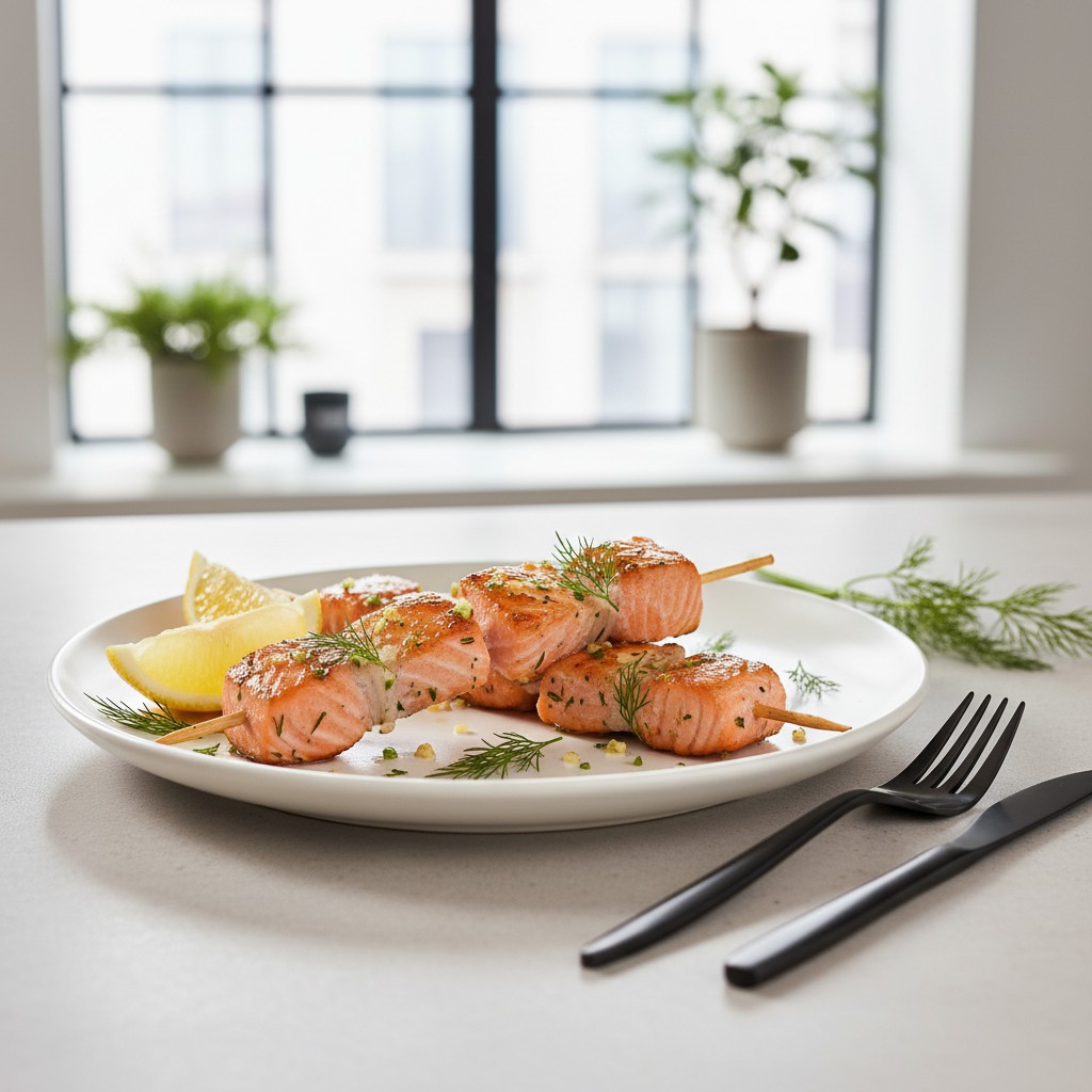 Brochettes de saumon marinées à l’aneth