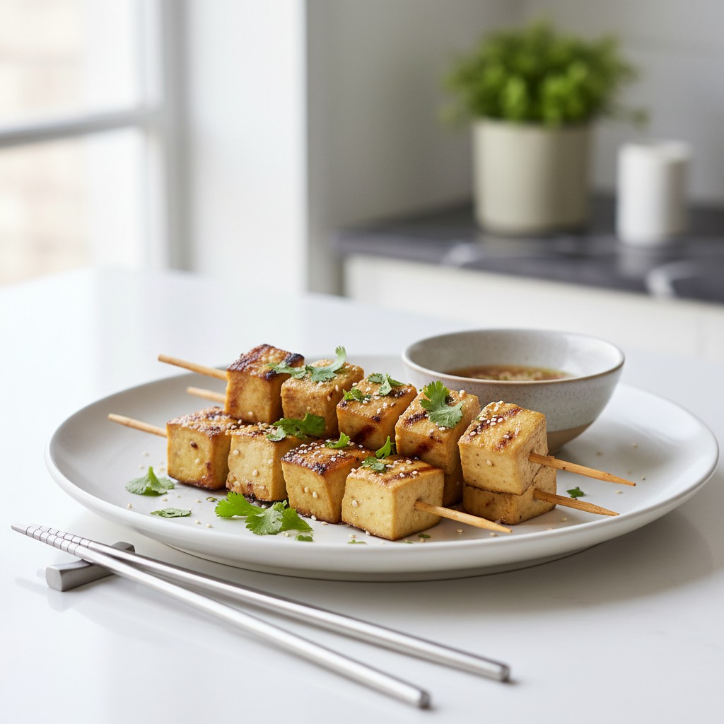 Découvrez une recette savoureuse et équilibrée de brochettes de tofu mariné au nuoc-mâm, une sauce vietnamienne emblématique. Parfaites pour un repas léger et riche en protéines végétales, ces brochettes allient des saveurs umami et une texture croustillante grâce à une cuisson au grill. Idéal pour les amateurs de cuisine asiatique et végétarienne.