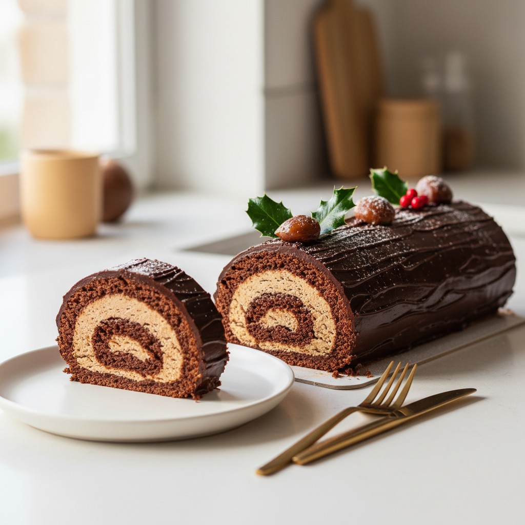 Cette bûche de Noël associe la douceur de la crème de marrons à l’intensité du chocolat pour un dessert festif et gourmand. Inspirée des traditions françaises, elle est parfaite pour clôturer un repas de fête avec élégance. Facile à préparer, elle peut être réalisée à l’avance pour plus de praticité.