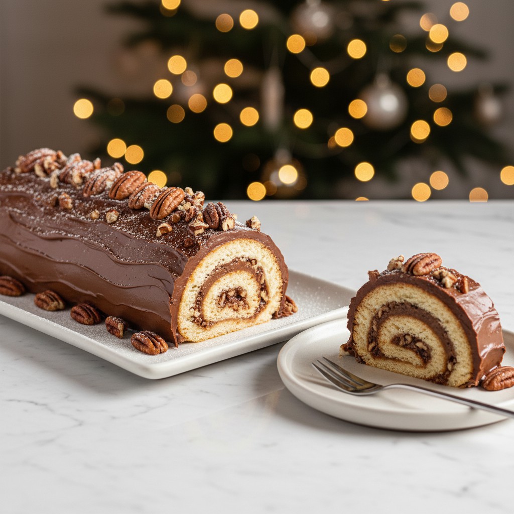 Cette bûche de Noël associe la douceur du chocolat au lait à la texture croquante des noix de pécan. Inspirée des traditions pâtissières françaises, elle est parfaite pour clôturer un repas festif avec élégance. Facile à réaliser, elle allie gourmandise et raffinement.