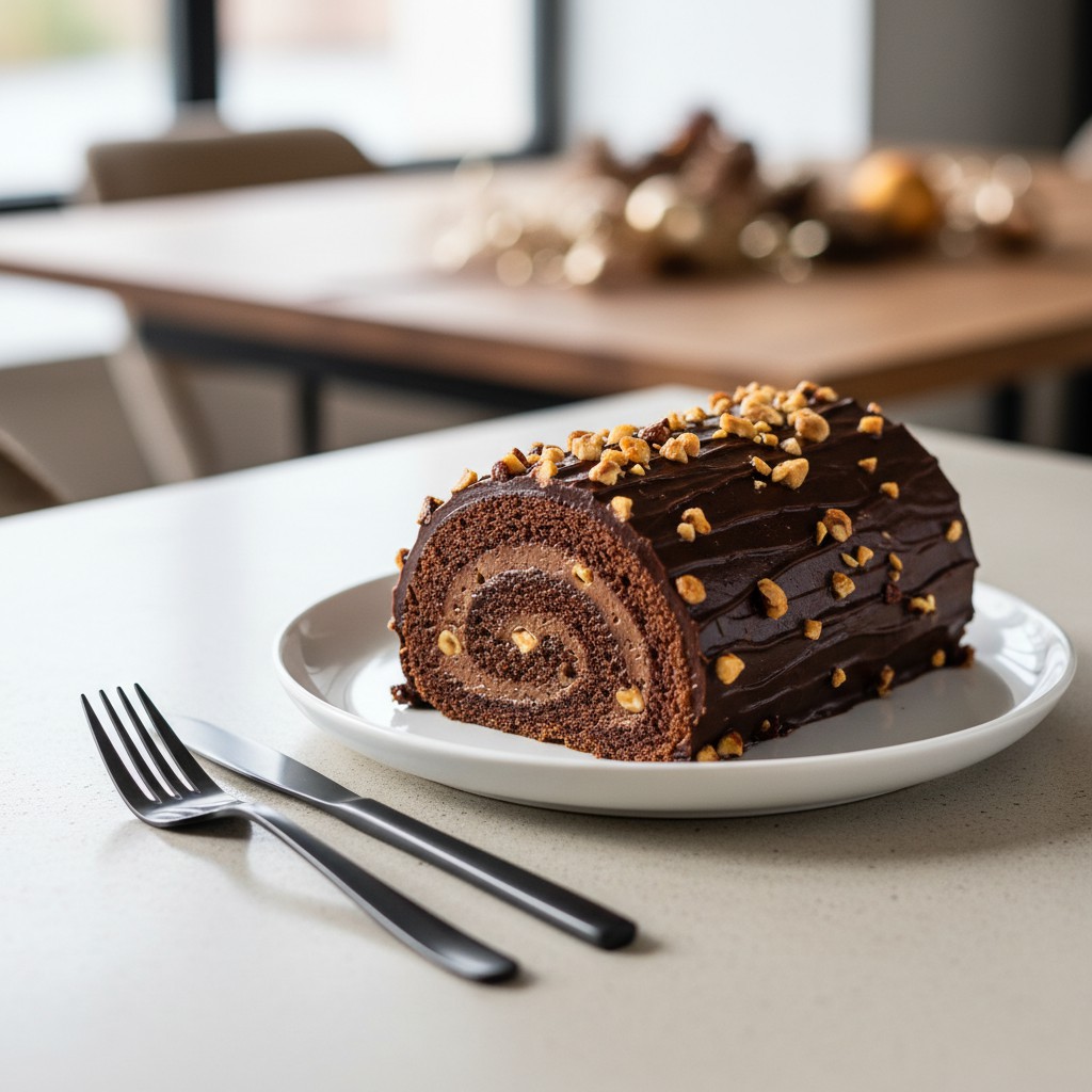 Cette bûche de Noël associe la richesse du chocolat noir à la texture croquante des éclats de noisettes. Inspirée des traditions pâtissières françaises, elle est parfaite pour clôturer un repas festif avec élégance. Facile à réaliser, elle allie gourmandise et raffinement.