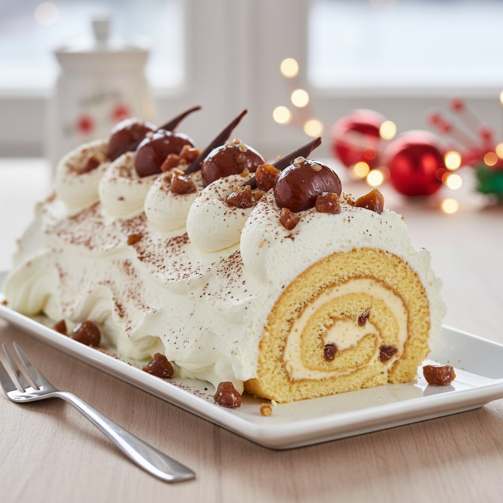 Cette bûche de Noël associe la douceur des marrons glacés à une crème pâtissière onctueuse, le tout enroulé dans une génoise moelleuse. Une recette festive et traditionnelle pour sublimer vos repas de fin d’année.