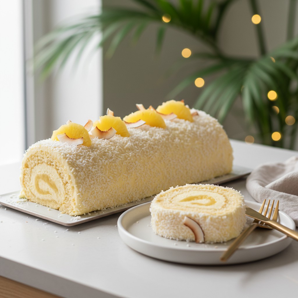 Cette bûche de Noël associe la douceur de la noix de coco à la fraîcheur de l’ananas pour un dessert léger et exotique. Inspirée des saveurs tropicales, elle est parfaite pour clôturer un repas de fête avec une touche d’originalité. Facile à préparer, elle allie un biscuit moelleux, une crème onctueuse et un glaçage gourmand.