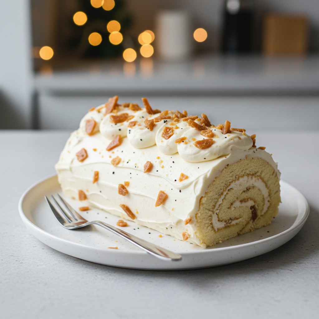 Cette bûche de Noël à la vanille et aux éclats de caramel est un dessert raffiné et gourmand, parfait pour les fêtes de fin d’année. Avec une génoise moelleuse, une crème légère à la vanille et des éclats de caramel croquants, elle allie textures et saveurs pour un résultat irrésistible. Une recette accessible pour impressionner vos convives.