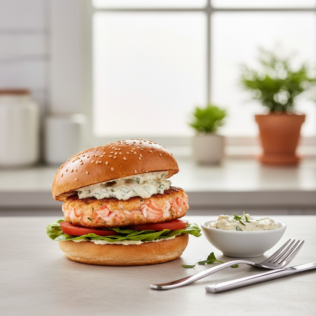 Ce burger de crevettes, inspiré des classiques américains revisités à la française, marie la douceur iodée des crevettes à la fraîcheur d’une sauce tartare maison. Léger mais gourmand, il offre une alternative raffinée au burger traditionnel, tout en restant accessible et équilibré. La recette met en avant la texture moelleuse du steak de crevettes, relevée par une sauce acidulée et croquante. Idéal pour un repas convivial, il s’inscrit dans la tradition des sandwichs de la mer, tout en valorisant la simplicité et la justesse des cuissons.