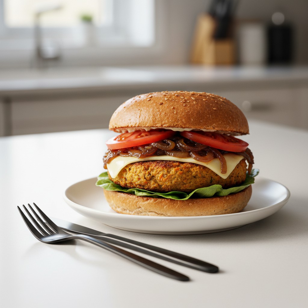 Ce burger végétarien met à l’honneur la lentille corail, légumineuse riche en protéines et en fibres, associée à la douceur des oignons caramélisés. Inspiré des tendances street food végétales, il offre une alternative savoureuse et rassasiante au burger classique, sans sacrifier la gourmandise ni l’équilibre nutritionnel. La texture moelleuse du steak de lentilles contraste avec le fondant des oignons et le croustillant du pain. Cette recette, accessible et authentique, valorise le fait-maison tout en restant simple à exécuter, même pour un premier essai.