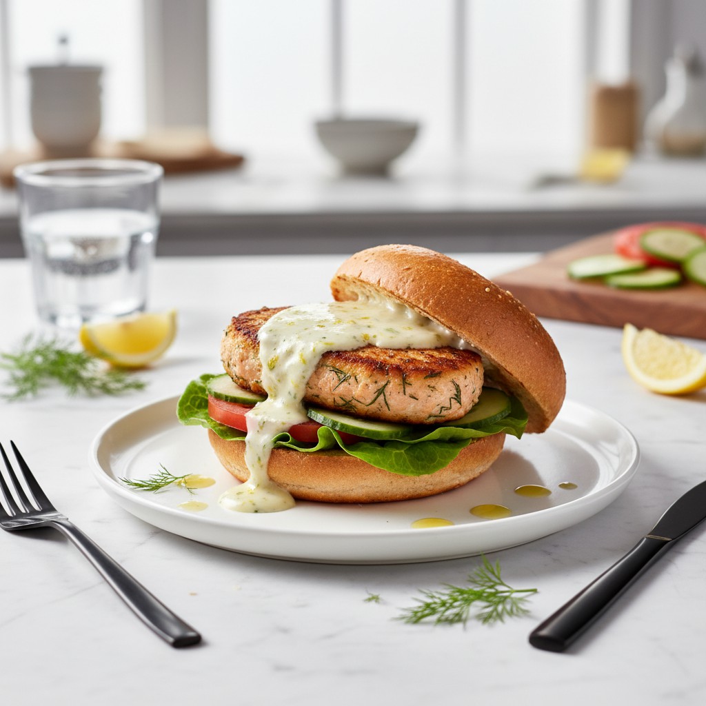Ce burger de saumon à l’aneth est une alternative saine et gourmande aux burgers classiques. Préparé avec du saumon frais, des herbes aromatiques et une sauce citronnée légère, il offre un équilibre parfait entre saveurs et nutrition. Idéal pour un repas convivial ou une option rapide et équilibrée.