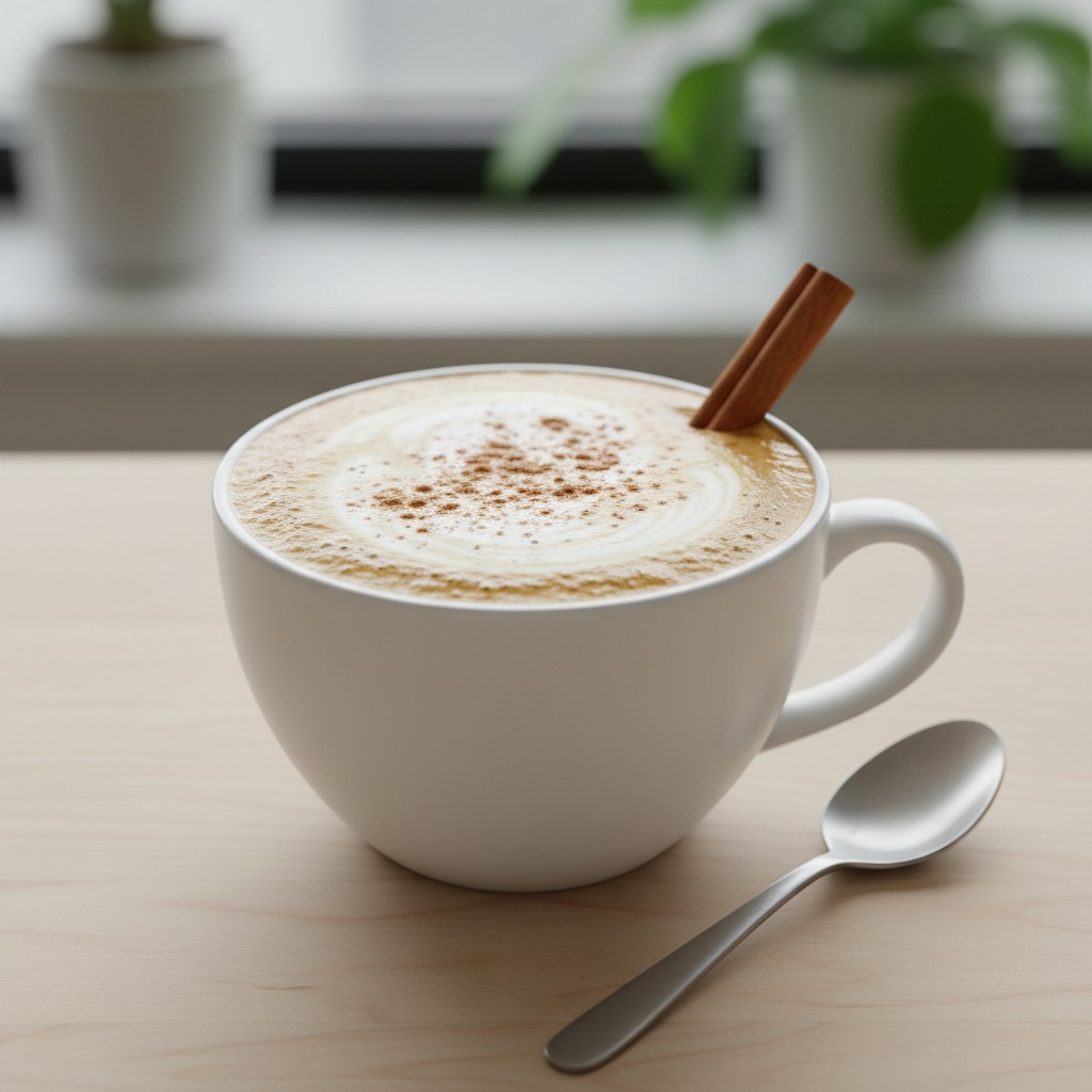 - Pour une touche esthétique, déposez un bâton de cannelle sur le bord de la tasse ou saupoudrez légèrement de cannelle en poudre sur la mousse. Servez immédiatement et dégustez.