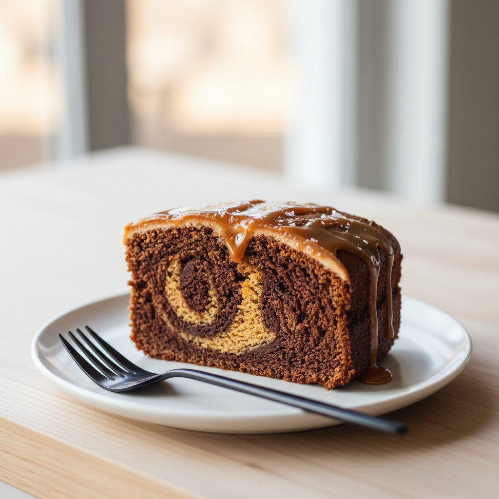- Versez la moitié de la pâte dans un moule à cake beurré et fariné. Ajoutez quelques cuillères de caramel en filet sur la pâte, puis recouvrez avec le reste de la pâte. Terminez en ajoutant un filet de caramel sur le dessus pour un effet marbré.