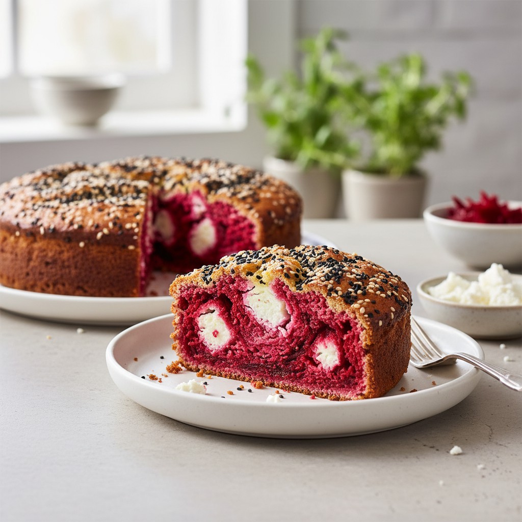 Ce cake salé à la betterave et à la feta est une recette originale et colorée, parfaite pour un apéritif, un pique-nique ou un repas léger. La douceur de la betterave se marie à merveille avec le goût salé et crémeux de la feta, le tout dans une texture moelleuse. Inspiré des saveurs méditerranéennes, ce cake est aussi une excellente façon d’intégrer des légumes dans votre alimentation.