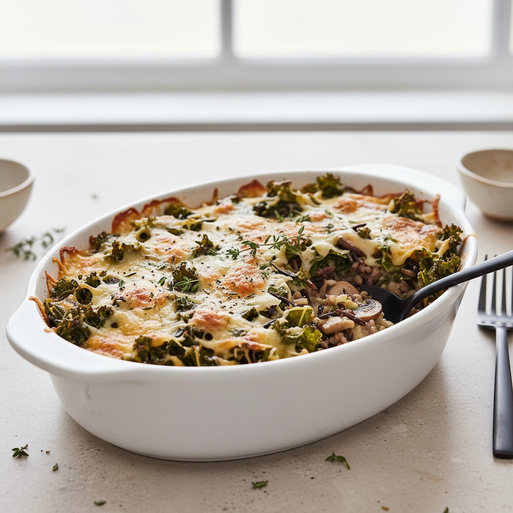 Une recette saine et réconfortante de casserole de chou kale et riz sauvage, idéale pour un repas équilibré. Ce plat associe la texture croquante du chou kale à la saveur légèrement noisettée du riz sauvage, le tout gratiné au four pour un résultat savoureux et nourrissant.
