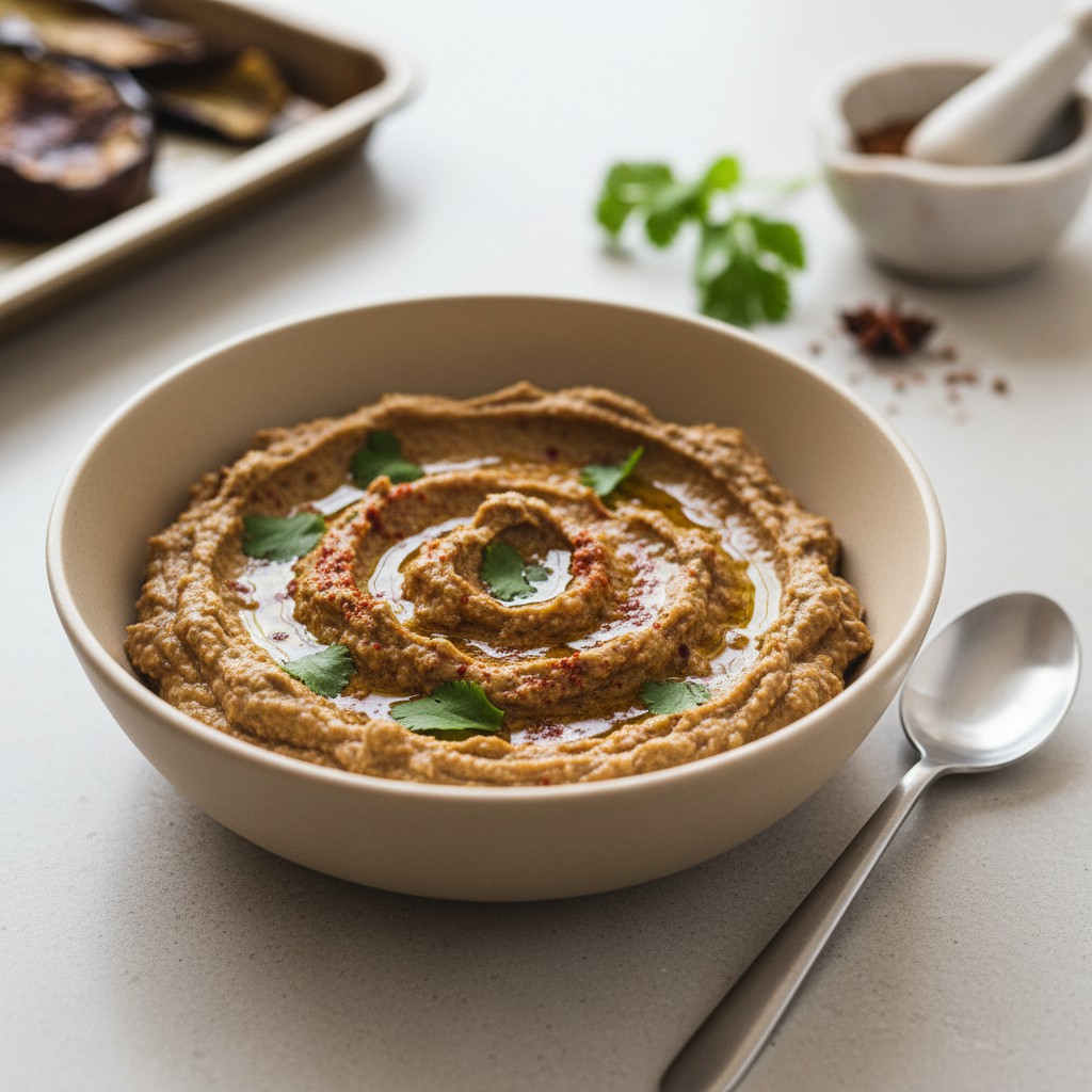 Le caviar d’aubergine est une spécialité méditerranéenne savoureuse et saine. Cette version aux épices douces apporte une touche chaleureuse et parfumée, idéale pour accompagner des tartines, des crudités ou des plats grillés. Facile à préparer, cette recette met en valeur la texture fondante de l’aubergine et les arômes subtils des épices.