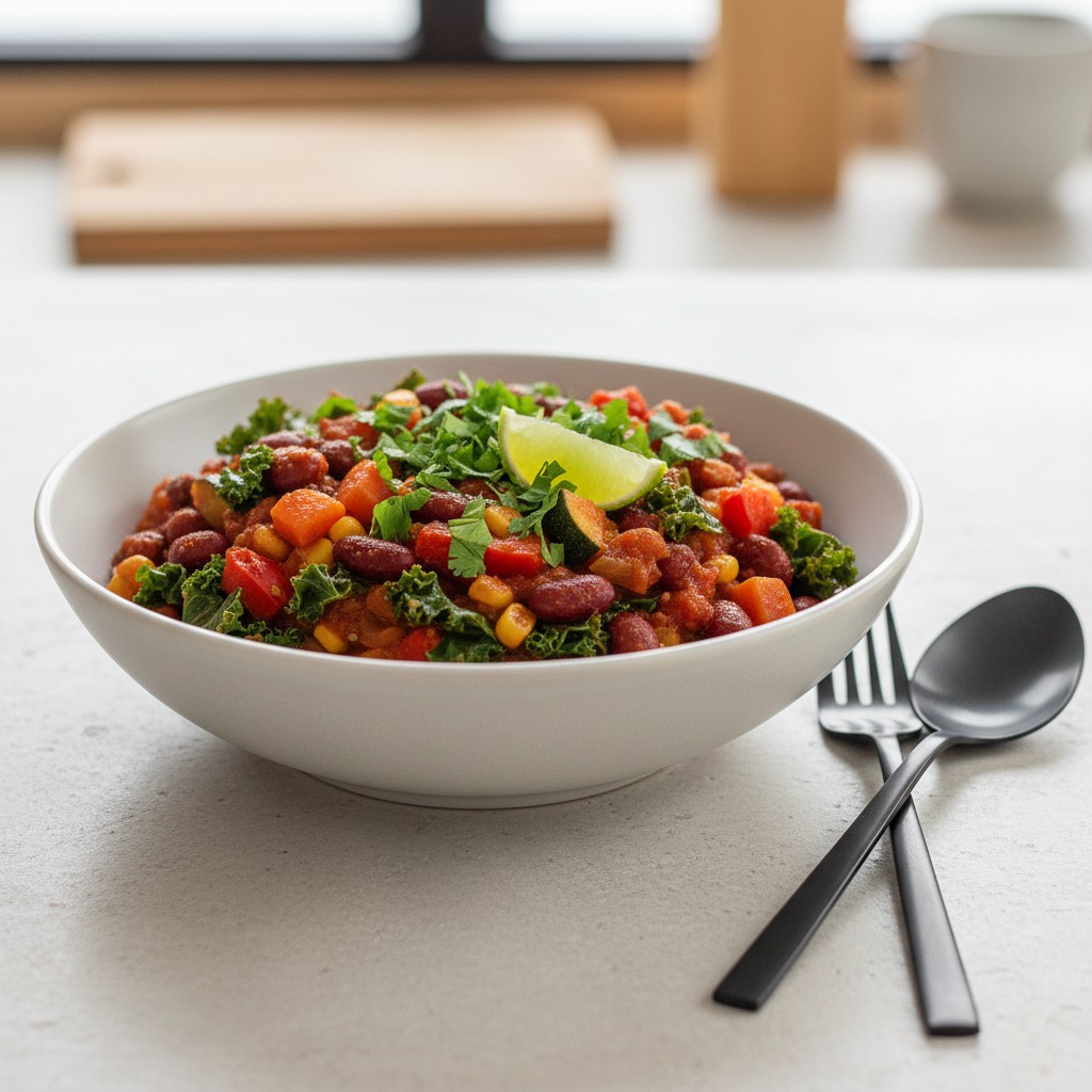 Découvrez une version végétarienne et équilibrée du chili sin carne, enrichie de chou kale pour une touche de verdure et de nutriments. Ce plat savoureux et réconfortant est parfait pour un repas sain et complet, tout en étant facile à préparer.