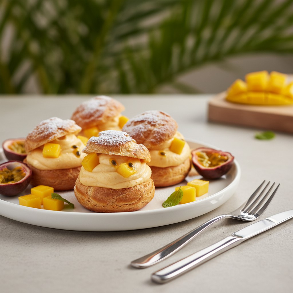 Découvrez une recette de choux légers et aérés, garnis d’une crème onctueuse aux fruits tropicaux. Parfaite pour une touche d’exotisme, cette recette allie la douceur de la pâte à choux à la fraîcheur des fruits comme la mangue, l’ananas et le fruit de la passion. Idéal pour un dessert ou un goûter original.