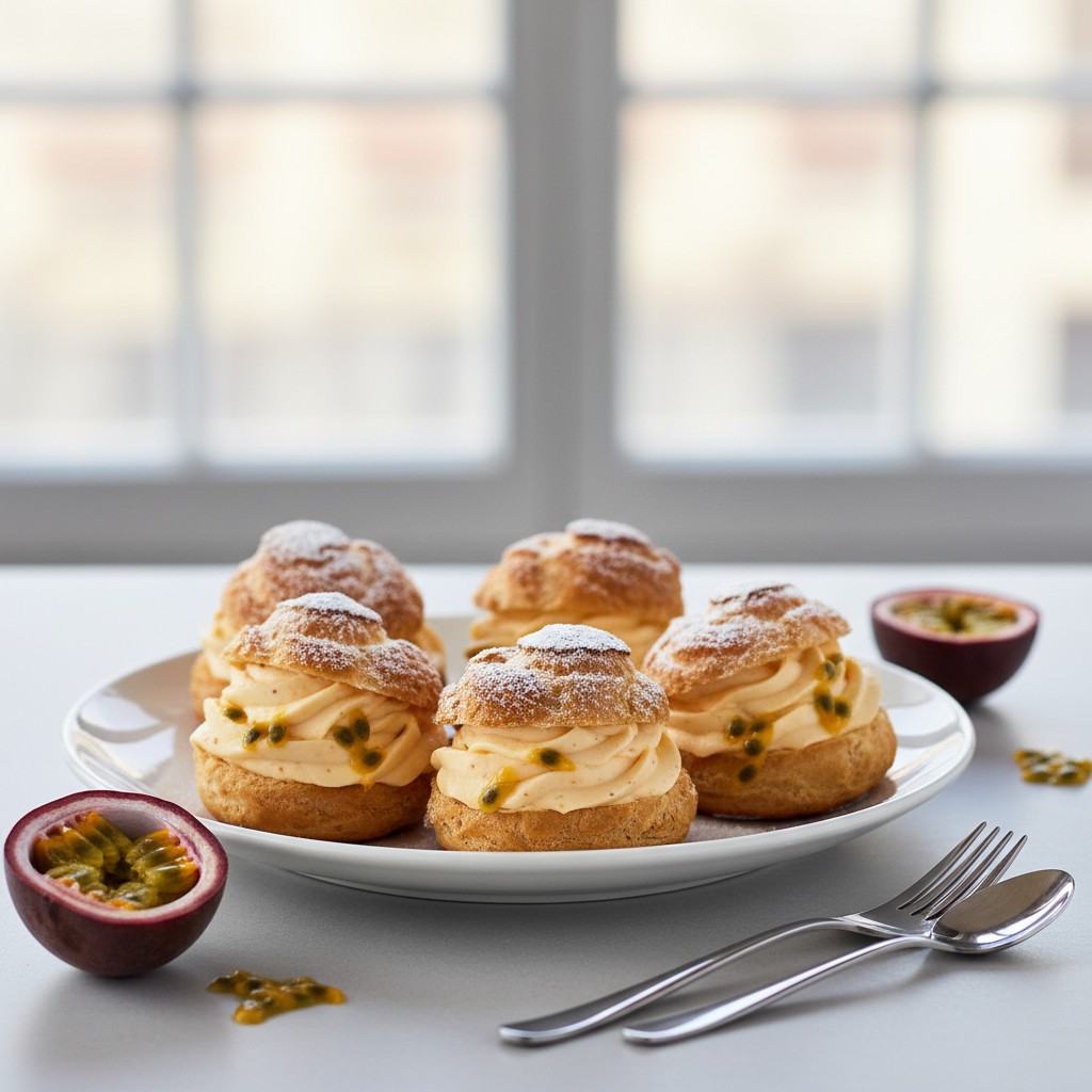 Découvrez une recette de choux légers et aérés, garnis d’une chantilly onctueuse et parfumée aux fruits de la passion. Une pâtisserie élégante et exotique, parfaite pour impressionner vos invités ou pour un dessert raffiné. Cette recette allie la tradition française des choux à une touche tropicale.