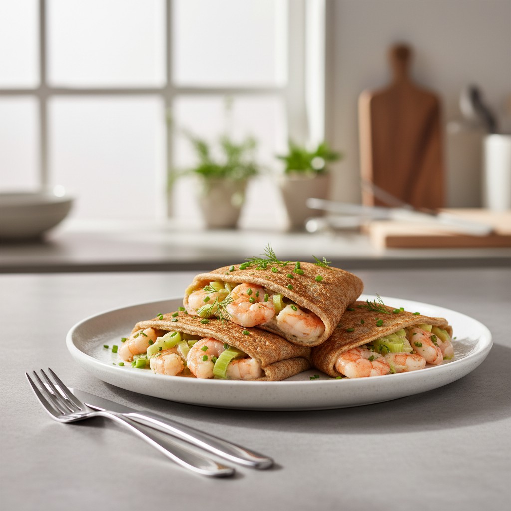 Les crêpes de sarrasin aux crevettes et poireaux sont un classique breton revisité, alliant la rusticité de la galette de sarrasin à la finesse des crevettes et à la douceur fondante du poireau. Cette recette, emblématique de la Bretagne, met en valeur la farine de sarrasin, naturellement sans gluten, et propose une garniture savoureuse, équilibrée et riche en protéines. Idéale pour un repas convivial, elle séduit par sa simplicité, son authenticité et sa capacité à s’adapter à différents régimes alimentaires. L’association terre-mer, typique de la cuisine bretonne, offre un contraste de textures et de saveurs, tout en restant digeste et légère.