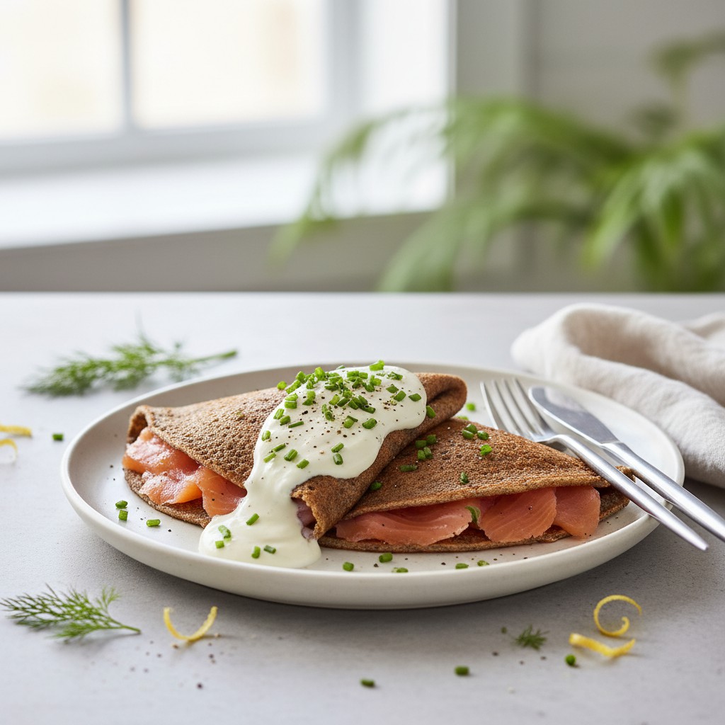 Découvrez cette recette bretonne traditionnelle revisitée : des crêpes de sarrasin légères et sans gluten, garnies de saumon fumé et d’une crème citronnée. Parfaites pour un repas équilibré et raffiné, ces crêpes sont idéales en entrée ou en plat principal.