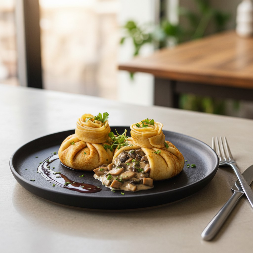 Plat emblématique de la cuisine française familiale, les crêpes farcies aux champignons et sauce au vin allient la finesse d’une pâte moelleuse à la richesse d’une garniture forestière. Cette recette, héritée des traditions bourguignonnes et bretonnes, met en valeur la saveur umami des champignons, relevée par une sauce au vin rouge subtilement réduite. Accessible et élégante, elle offre un équilibre entre plaisir gustatif, apport nutritionnel (fibres, protéines végétales) et convivialité. Idéale pour un repas du soir ou un déjeuner raffiné, elle permet de varier les champignons selon la saison et d’adapter la sauce pour plus de légèreté.