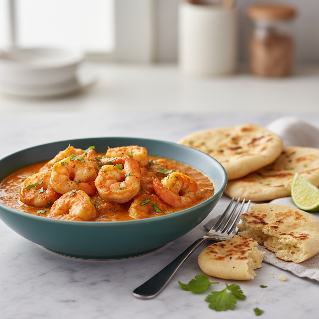 Un plat emblématique de la cuisine indienne, associant des crevettes tendres mijotées dans une sauce parfumée aux épices douces et relevées, accompagnées de naans moelleux faits maison. Cette recette met en valeur l’équilibre entre la fraîcheur des produits de la mer et la richesse aromatique des épices indiennes, tout en restant accessible à réaliser chez soi. Les naans, pains traditionnels cuits à la poêle, apportent une texture réconfortante et permettent de savourer la sauce jusqu’à la dernière goutte. Originaire des régions côtières de l’Inde, ce plat illustre la diversité culinaire du sous-continent et l’importance du partage autour de la table.