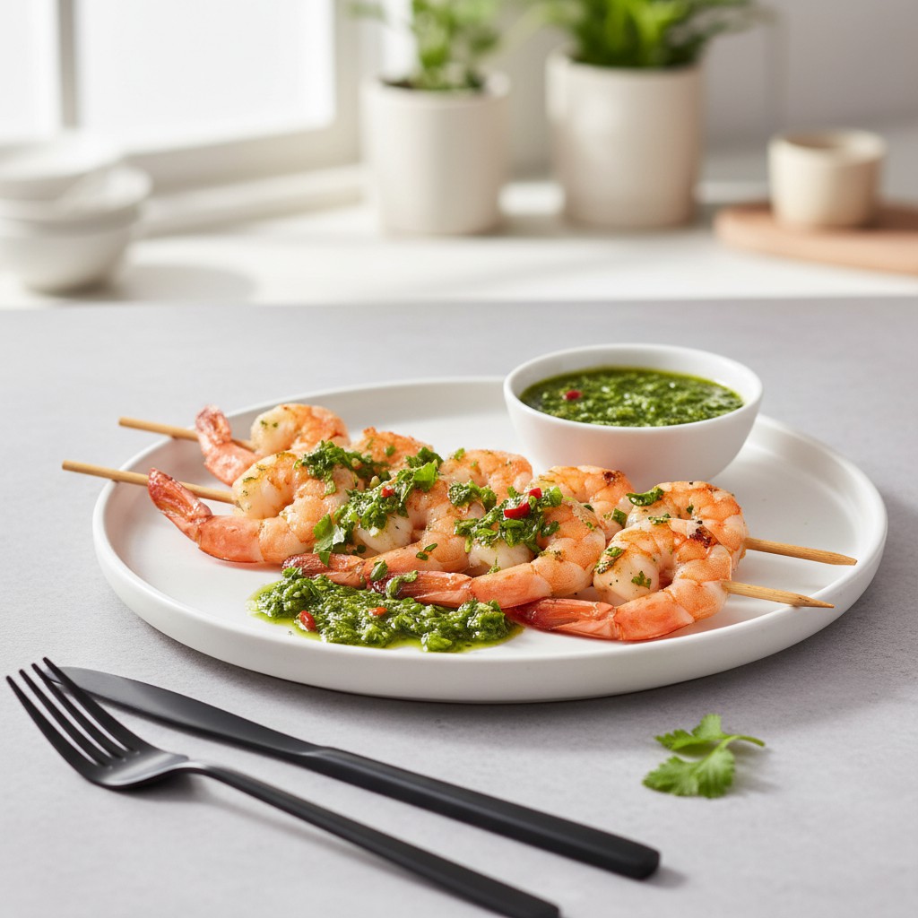 Des brochettes de crevettes grillées, relevées par une sauce chimichurri fraîche et parfumée. Cette recette, inspirée des traditions sud-américaines, marie la douceur iodée des crevettes à la vivacité herbacée du chimichurri, une sauce emblématique d’Argentine. Idéale pour un repas convivial, elle met en avant la simplicité, la rapidité d’exécution et l’équilibre nutritionnel (protéines maigres, herbes fraîches, peu de matières grasses). Le secret réside dans la maîtrise de la cuisson des crevettes et l’assaisonnement juste du chimichurri.