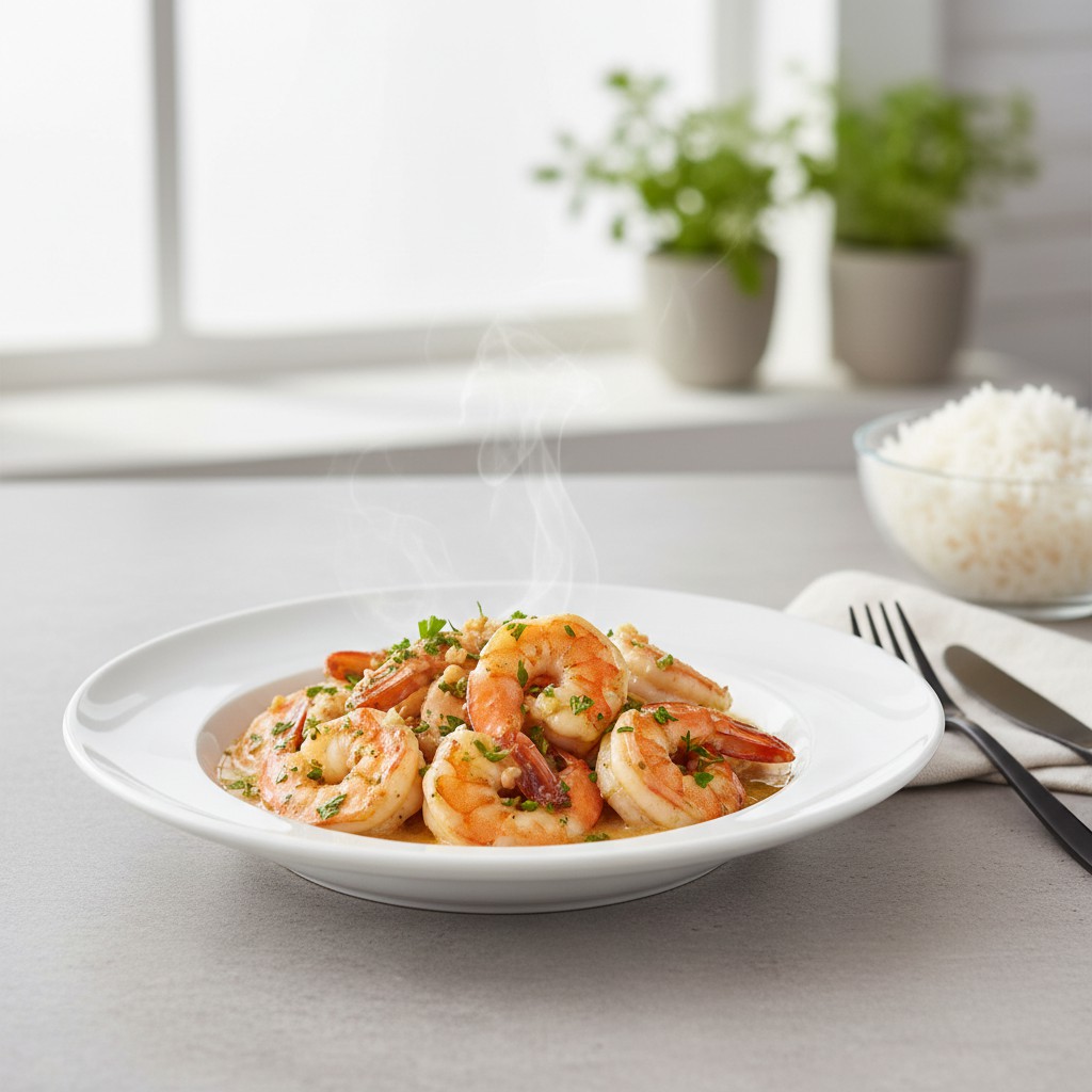 - Servez immédiatement, nappé de sauce, accompagné de riz basmati, de tagliatelles fraîches ou d’une salade croquante. Dégustez sans attendre pour profiter de la texture juteuse des crevettes.
