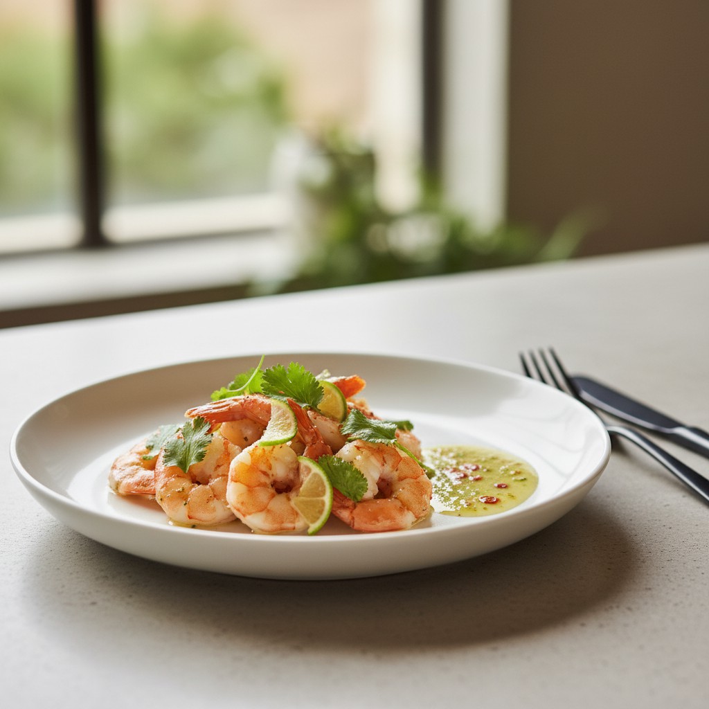 Cette recette de crevettes marinées au citron vert et coriandre met en valeur la fraîcheur et la vivacité des saveurs, tout en restant légère et équilibrée. Idéale en entrée ou en plat léger, elle s’inspire des traditions culinaires d’Amérique latine et d’Asie du Sud-Est, où l’acidité du citron vert sublime la douceur des crevettes. La coriandre apporte une note herbacée et parfumée, tandis que la marinade courte préserve la texture ferme et juteuse des crevettes. Accessible et rapide, cette préparation est parfaite pour un repas convivial, tout en offrant un excellent apport en protéines maigres et en micronutriments.